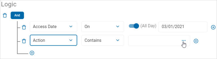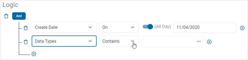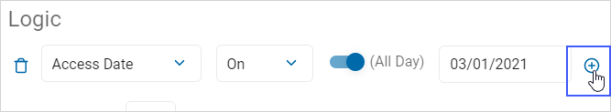 To add a new group containing a filter value plus one additional value, click the plus icon.