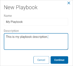 - In the New Playbook pop-up window, type the name and description of the playbook.