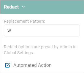 Redaction settings are managed by the Admin in Sensitive Data Platform Settings.