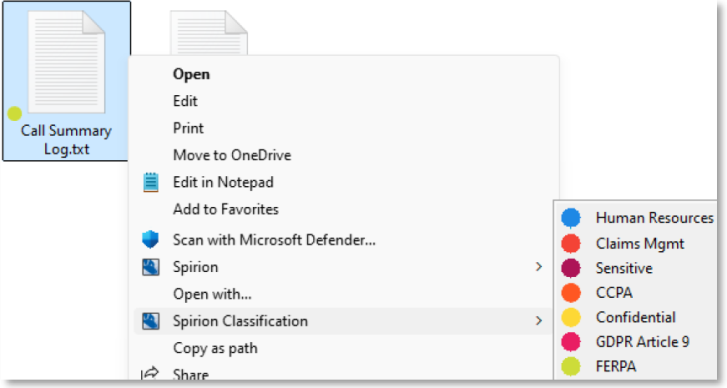 It also provides a visual indicator to end users to inform them that a given file has been classified.