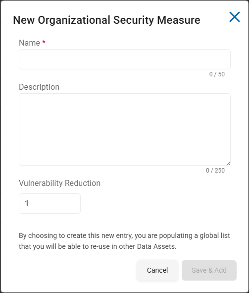 On the New Organizational Security Measure pop-up window, fill the following information: