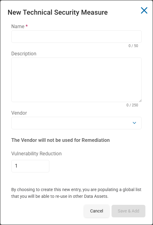 Vulnerability Reduction: Enter the vulnerability score between 1 to 10. This is a measure of how much vulnerability in your organization is reduced by this security measure.