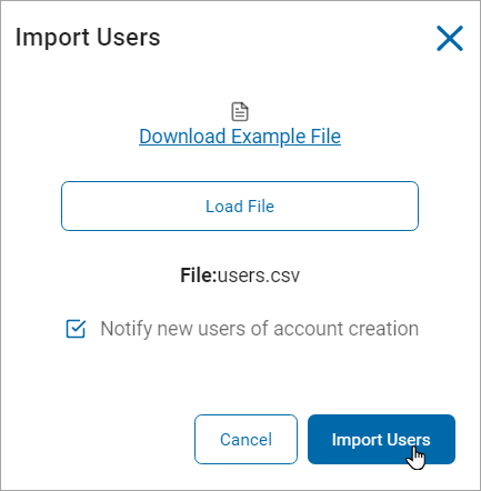 Click Import Users to import the new users or Cancel to discard.