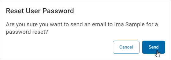 3. Click Reset Password. A pop-up window displays to confirm whether to send an email to the user for password reset or not.
