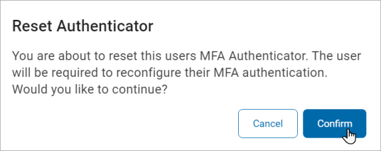 4. A pop-up window displays to confirm whether to reset authenticator for the user or not.