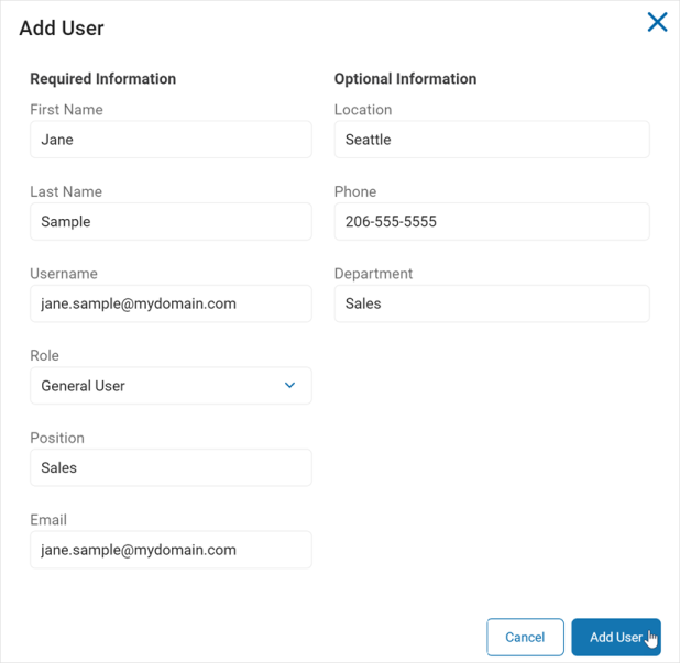 • Role: Click an option from the drop-down list. (Note: If you need to create a new Role, see How to Manage User Roles.)