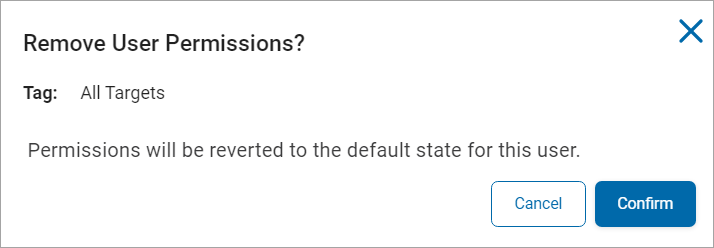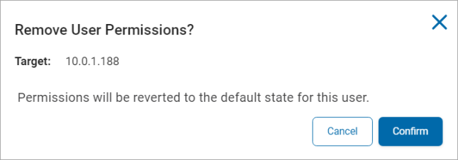 7. On the Remove User Permissions pop-up window, click Confirm to revert the user permissions to its default state else click Cancel.