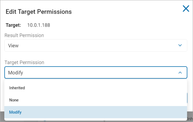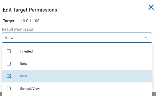7. On the Edit Target Permissions pop-up window, select any of the following options from the Result Permission drop-down list.