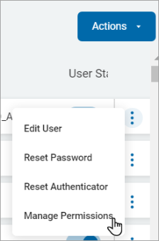 4. On the Manage User Permissions page, locate a target to edit permissions for a user.