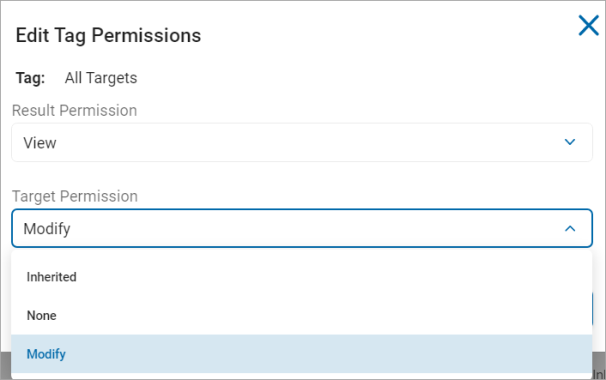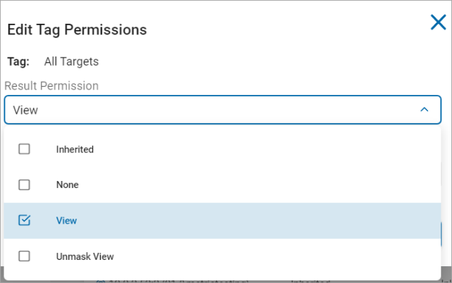 7. On the Edit Tag Permissions pop-up window, select any of the following options from the Result Permission drop-down list.