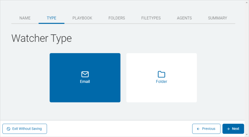 The Watcher Settings section display the following fields when Email is selected as a watcher type.