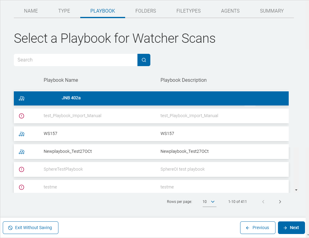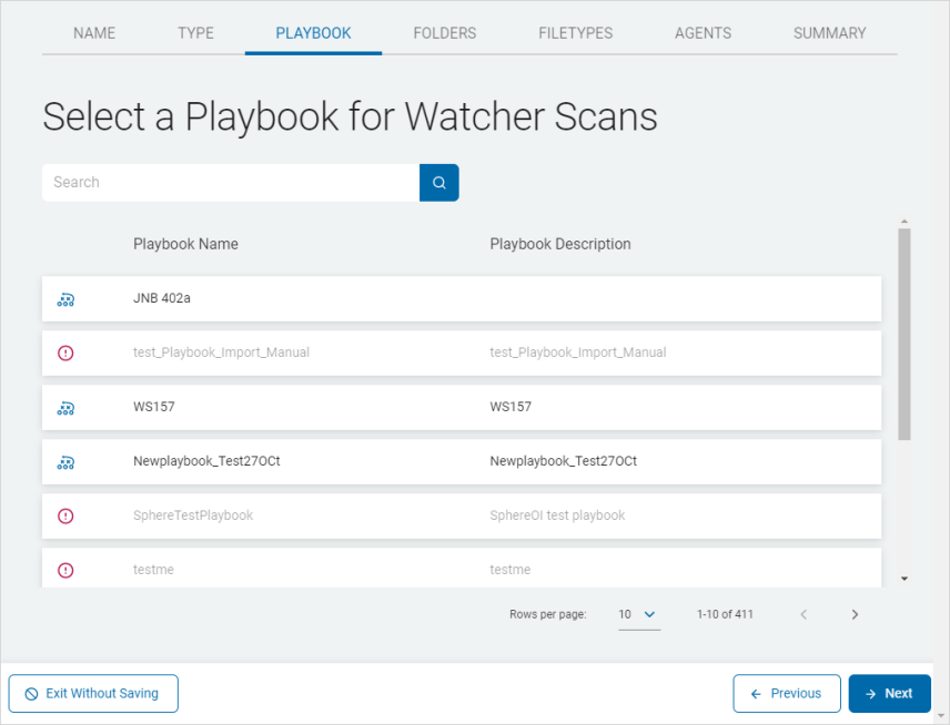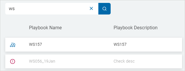 To search for a specific playbook, type the criteria the search box and the results are displayed in the table below.