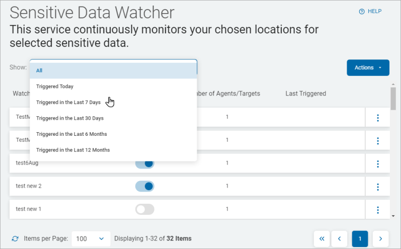 To filter by Triggered Date, select an option from the Show drop-down list.