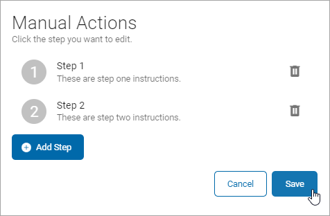 5. In the Manual Actions edit pop-up window, click Add Step.