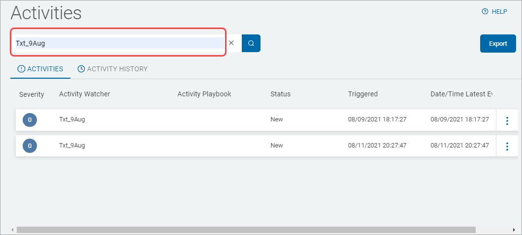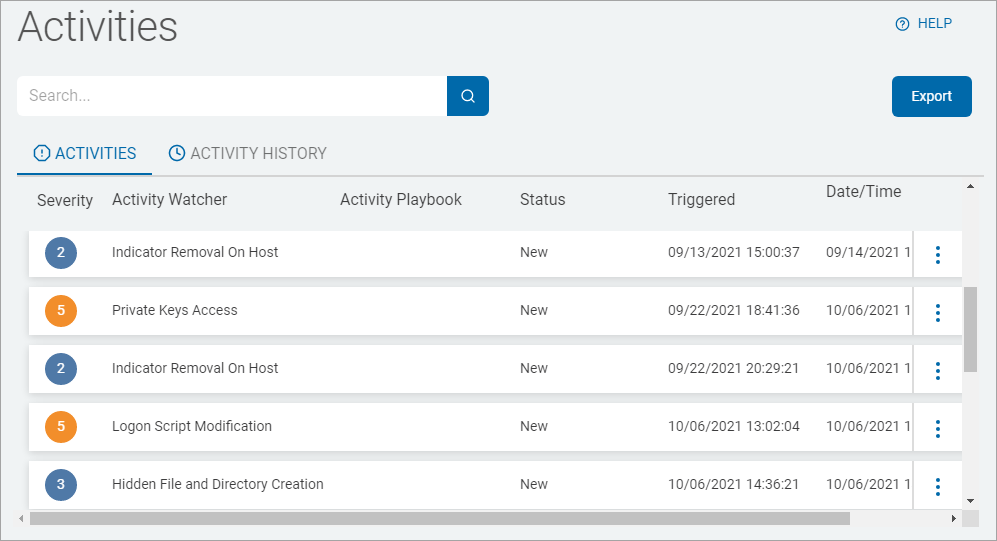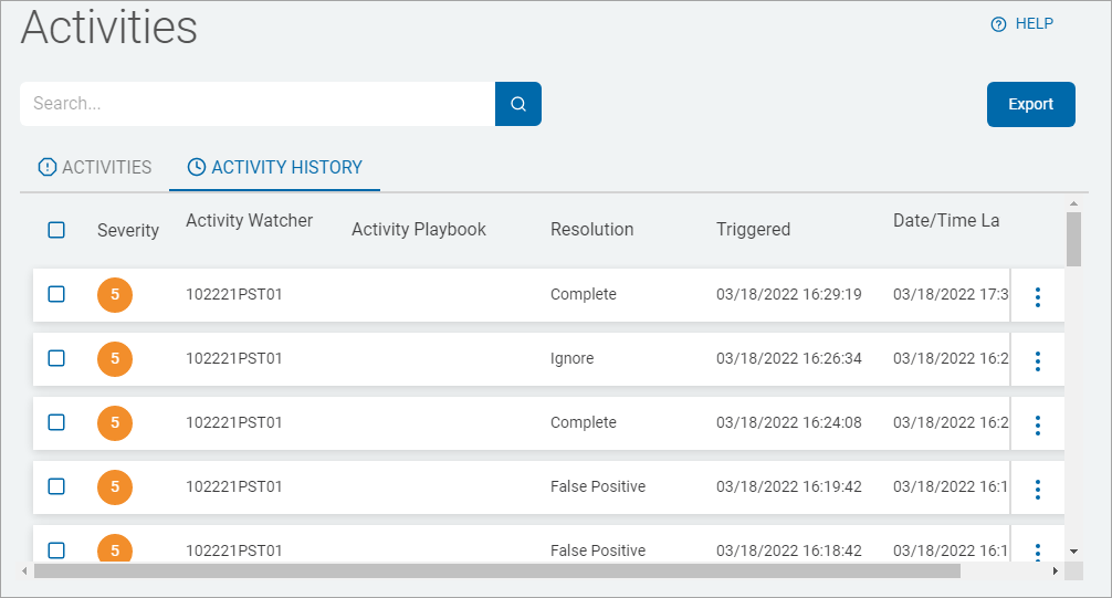 The Activities screen displays activities and activities histories sorted by column. It's important to remember: