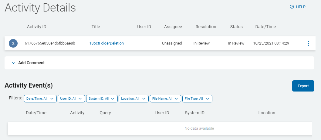 4. On theActivity Detail screen, type a comment in the Add Comment box.
