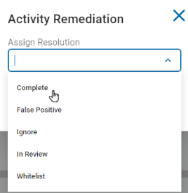 4. In the Incident Remediation Assign Resolution pop-up window, do the following: